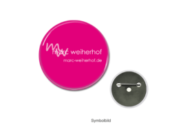 Nadelbutton groß: Bekenne Farbe und trage jetzt einen pinken Marc Weiherhof-Button. Egal ob an deiner Jacke, Hose, Tasche oder am Basecap; Ein absoluter Hingucker.